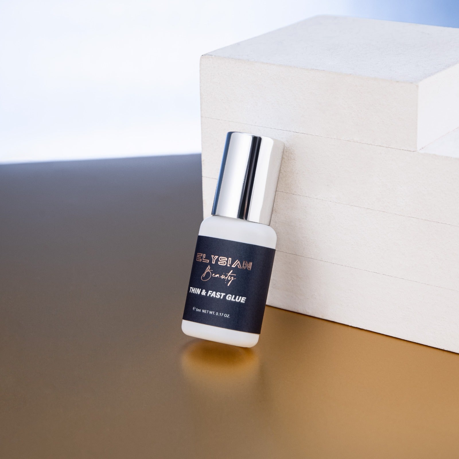 Elysian Beauty Thin & Fast Lash Extension Glue is a professional-grade adhesive designed for precise and fast lash application.